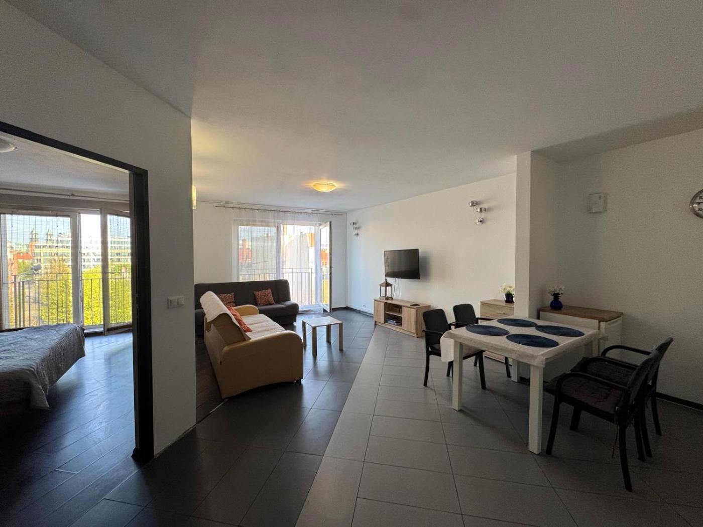 Apartament z 2 sypialniami. This apartment consists of 1 living room, 1 separate bedroom and 1 bathroom with a walk-in shower and a bath or a shower. Guests can make meals in the kitchen that is equipped with a stovetop, a refrigerator, kitchenware and an oven. Featuring a balcony with city views, this apartment also provides a washing machine and a flat-screen TV with cable channels. The unit offers 3 beds. Apartament - 6 osobowy. Powierzchnia pokoju ok.: 60 mkw.