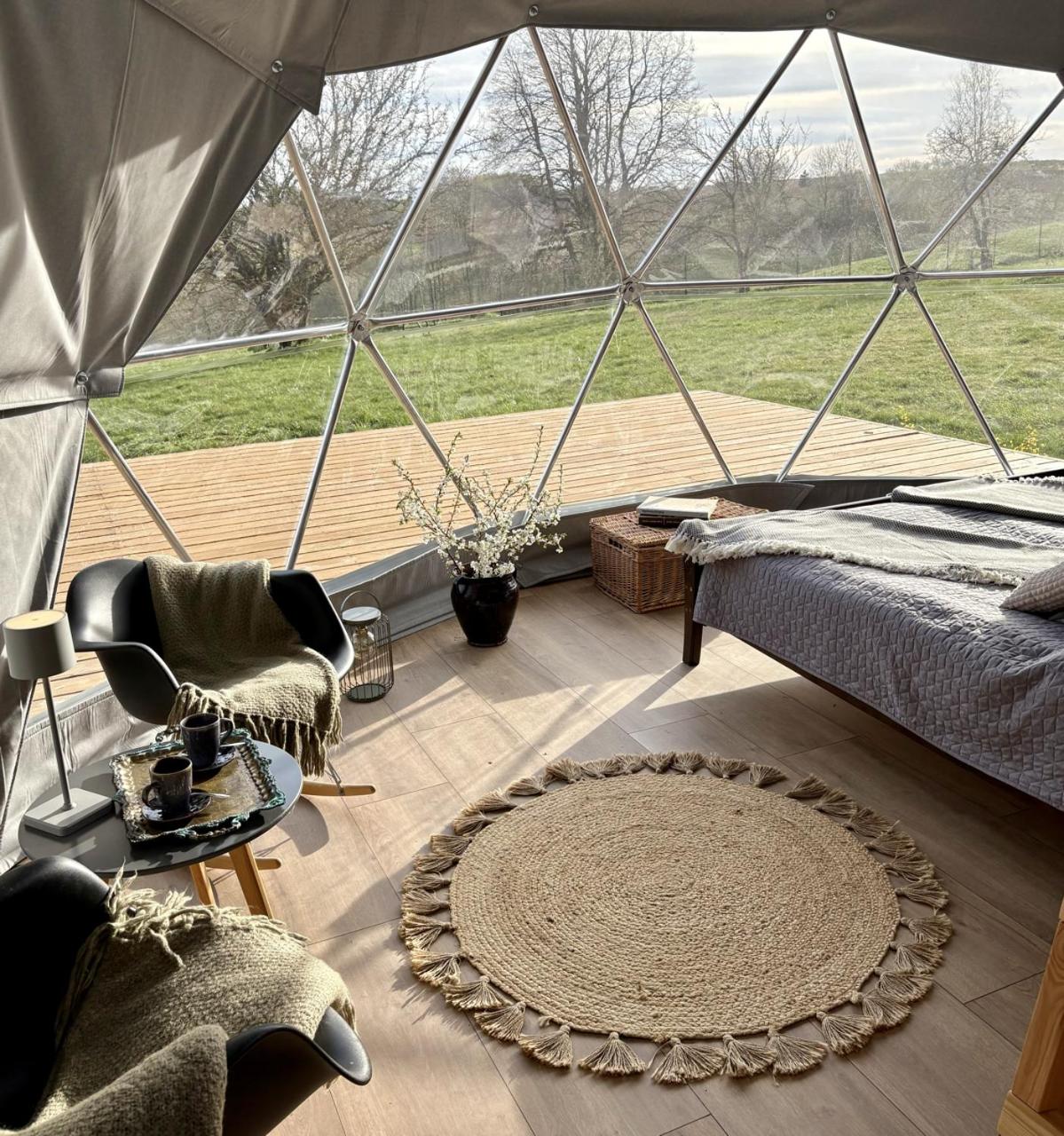 Namiot. Guests will find a refrigerator and kitchenware in the kitchenette. The tent also comes with a barbecue. The tent features air conditioning, a tea and coffee maker, a terrace with garden views as well as a private bathroom boasting a bath. The unit has 3 beds. Namiot - 4 osobowy. Powierzchnia pokoju ok.: 28 mkw.